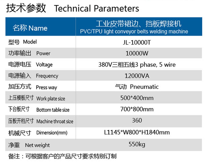 wpn0712KW工业皮带焊接机设备适合:裙边挡板、正面导条、加强型挡板、皮带包边的PU、PVC材料焊接。经2004年至今