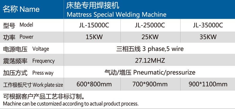 ※ 此设备专用于大型床垫、医用床垫、冰垫焊接,采用稳定的元件,坚固的外形结构。