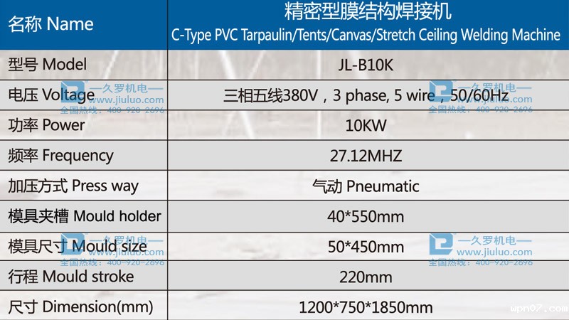 wpn07公司结合欧美的技术理念开发生产的膜结构材料焊接机,它属于中型精密膜材料焊接设备,适用于各类PVC/PVDF/TPU涂层布膜材料焊接,适用于pvc篷房、帐篷、建筑膜结构、张拉膜、空间膜、索膜、停车棚(汽车蓬)、水囊、水池、军用水袋、车棚、膜结构景观小品的等产品的加工制作。